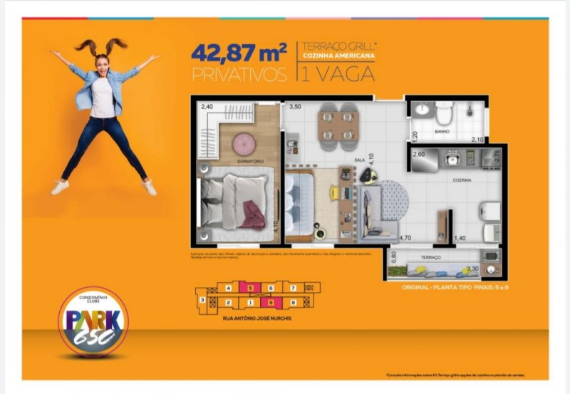 - Área Privativa: 43 m²
